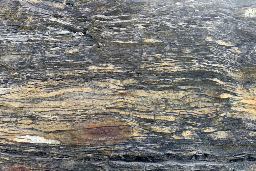 Bedding and laminations form through episodic or continuous sediment deposition, driven by changes in flow velocity, sediment supply, or depositional energy. In glacial and proglacial environments, they may result from fluctuating meltwater streams, lake settling processes, or sediment-laden underflows. Seasonal variations in sediment influx can produce rhythmic layering, as seen in varves.